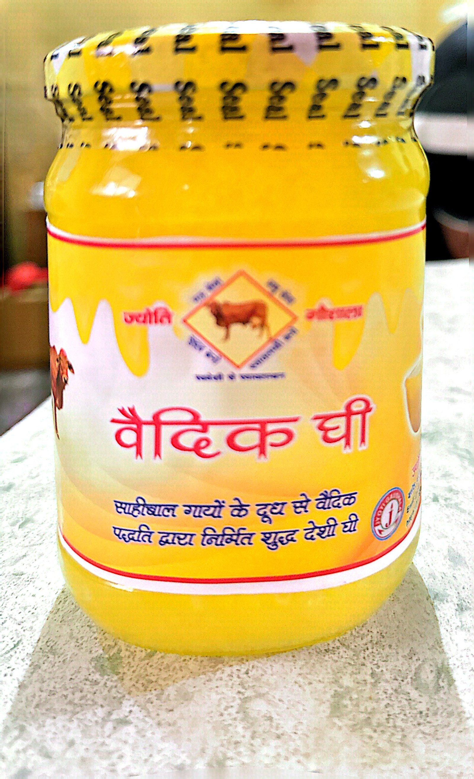 The process of making Vedic ghee, also known as clarified butter, follows ancient traditional methods described in Vedic